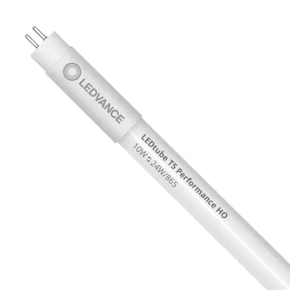 Die Ledvance LED Röhre T5 Performance (Mains AC) High Output 10W 1500lm - 865 Tageslichtweiß | 55cm - Ersatz für 24W ist eine effiziente LED-Röhre und der perfekte Ersatz für Ihre konventionelle Leuchtstoffröhre mit 24W und einem G5. Die Röhre hat eine Länge von 549 mm und einen Durchmesser von 19 mm. Zudem strahlt das Produkt Licht in der Farbtemperatur 6500K - Tageslichtweiß aus und punktet durch eine lange Lebensdauer.
