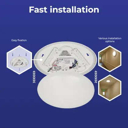 Die Noxion LED-Wand- und Deckenleuchte Corido V2 Weiß 12/16/20W 2000lm 830-840-865 CCT | IP44 - Bewegungs- und Lichtsensor - Not 3H ist eine Feuchtraumleuchte. Sie strahlt Licht in der Farbtemperatur aus und punktet durch eine lange Lebensdauer. Diese Leuchte ist speziell zur Verwendung in Feuchträumen (Keller, Waschräume, etc.) vorgesehen.