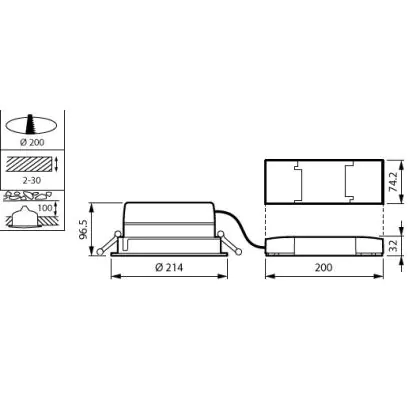 Beschreibung Philips LED Downlight LuxSpace Kompakt geringe Höhe DN570B 20.9W 2600lm 80D - 830 Warmweiß | 214mm - Aluminium Reflektor